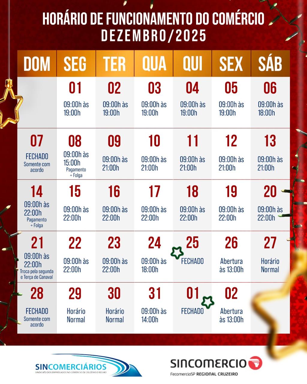 📢 Atenção ao horário de funcionamento do comércio em dezembro!