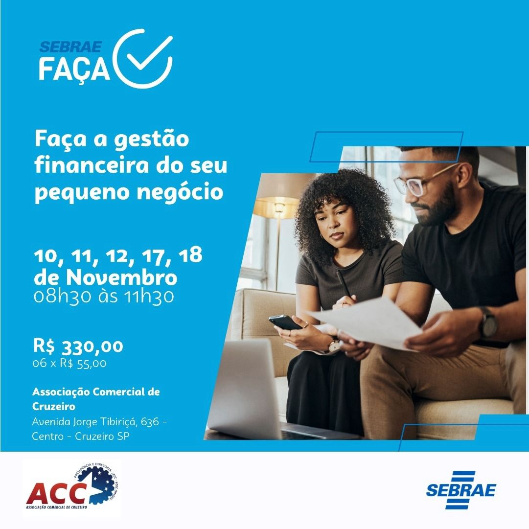 Em parceria com o Sebrae, a ACC vai lançar um curso de 5 dias totalmente voltado para quem quer dominar a gestão financeira do seu negócio e garantir mais controle e resultados.